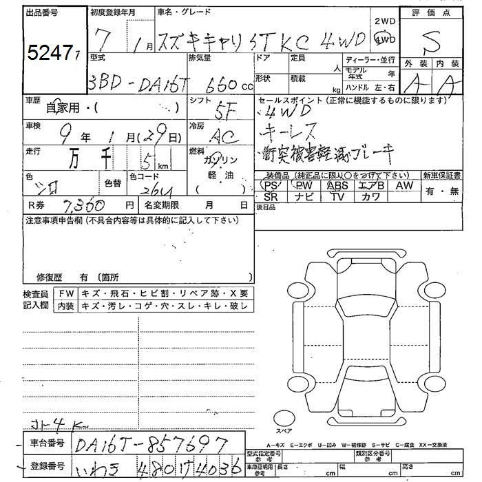 SUZUKI CARRY 4WD KC - лот 5247