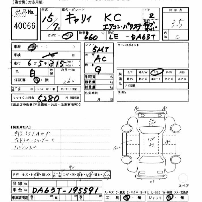 SUZUKI CARRY 4WD KC AIR CONDITIONER - POWER STEERING - лот 40066