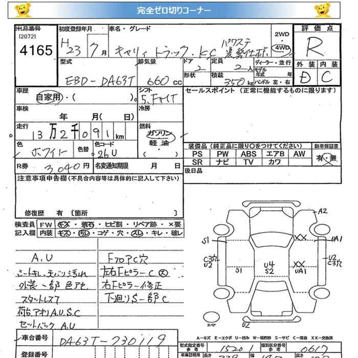 SUZUKI CARRY 4WD KC POWER STEERING NOUHAN USE - лот 4165