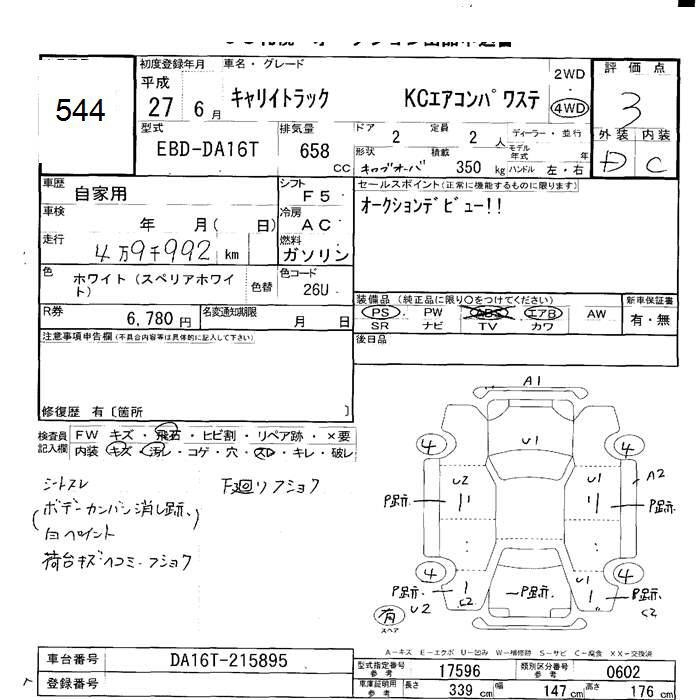 SUZUKI CARRY 4WD KC AIR CONDITIONER - POWER STEERING - лот 544