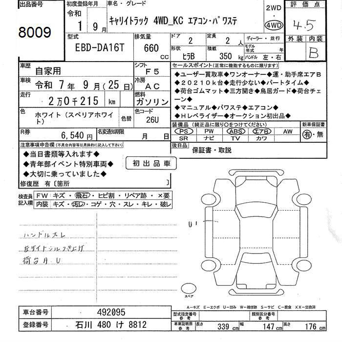 SUZUKI CARRY 4WD KC AIR CONDITIONER - POWER STEERING - лот 8009