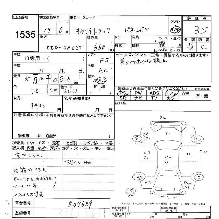 SUZUKI CARRY 4WD PANEL VAN - лот 1535