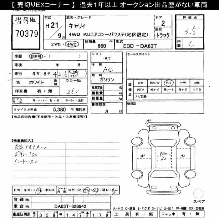 SUZUKI CARRY 4WD KU AIR CONDITIONER - POWER STEERING AREA LIMITATION - лот 70379