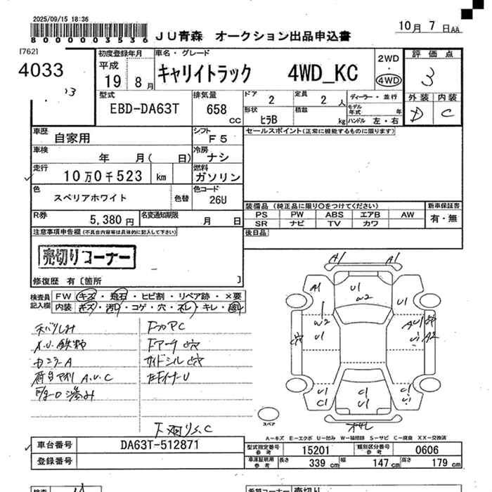 SUZUKI CARRY 4WD KC - лот 4033