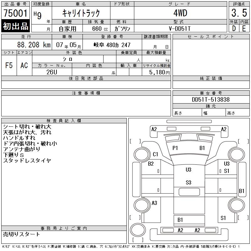 SUZUKI CARRY TRUCK - лот 75001