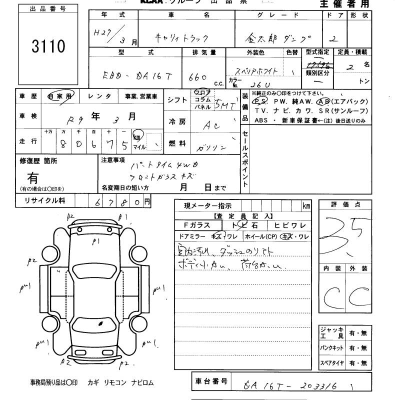 SUZUKI CARRY TRUCK - лот 3110