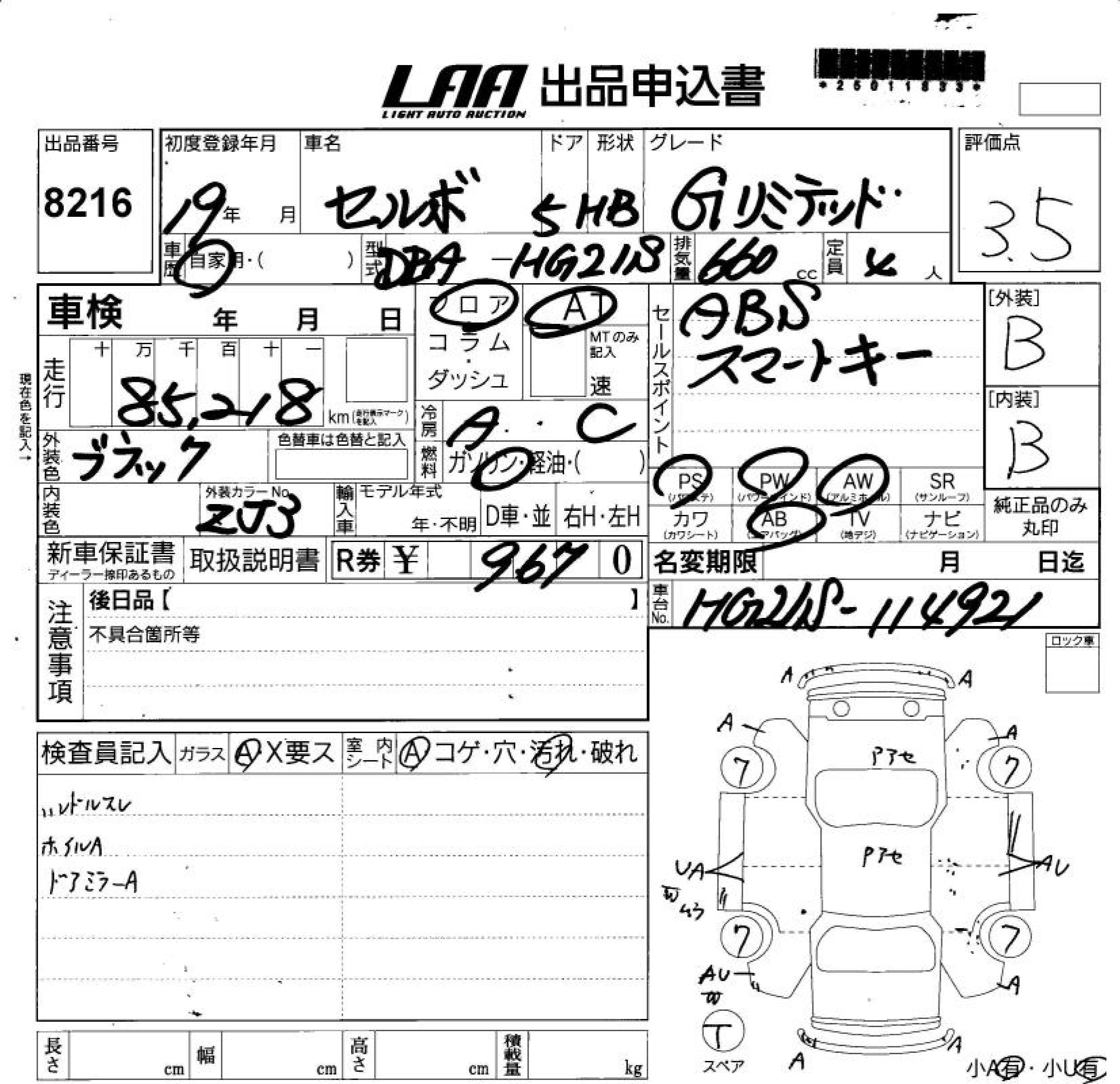 SUZUKI CERVO G LIMITED - лот 8216