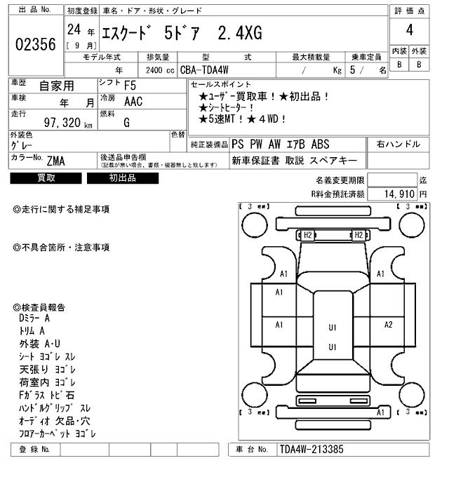 Оборудование: PS PW AW подушка безопасности ABS расстояние 97,320km депозит уплачен 14,910 иен