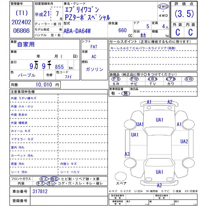 SUZUKI EVERY WAGON, 2010