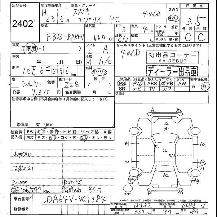 SUZUKI EVERY VAN 4WD PC - лот 2402