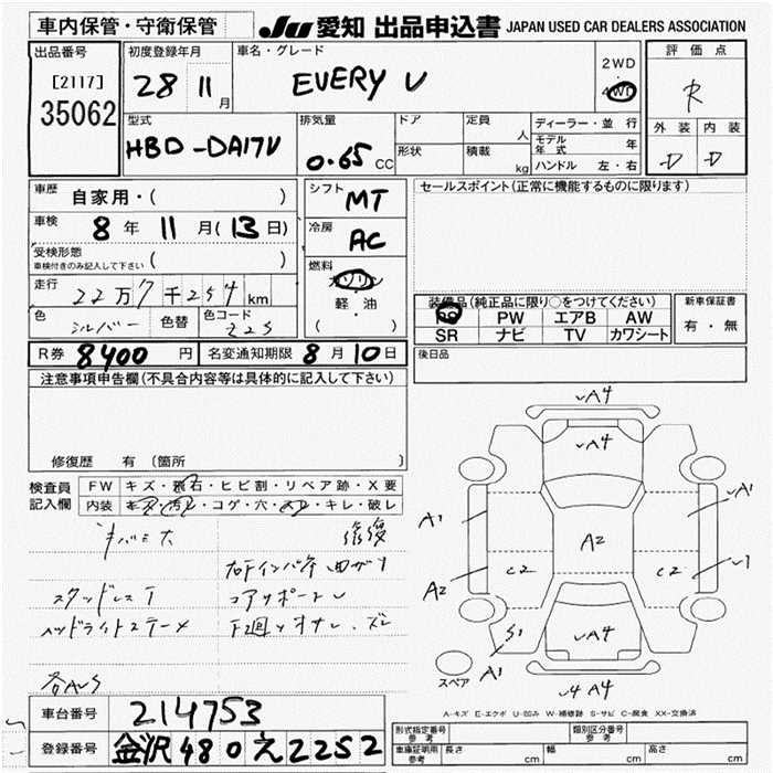 SUZUKI EVERY VAN 4WD - лот 35062