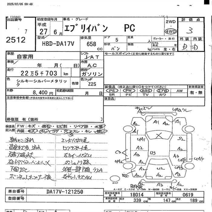 SUZUKI EVERY VAN 4WD PC - лот 2512