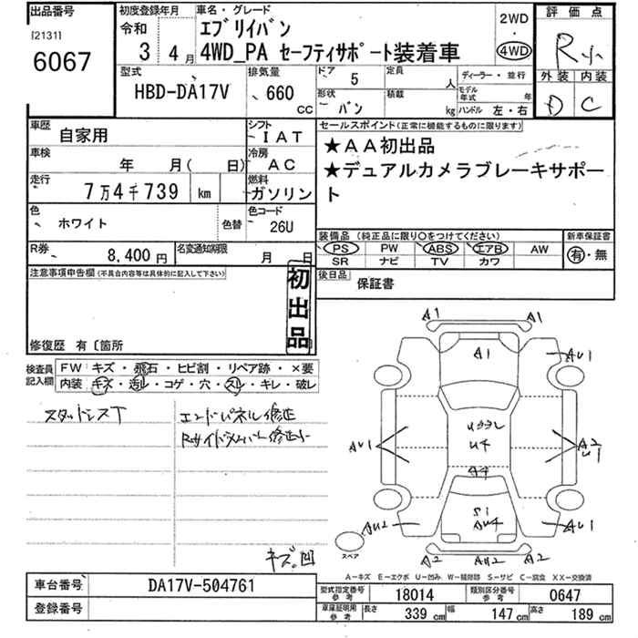 SUZUKI EVERY VAN 4WD PA SAFETY SUPPORT - лот 6067
