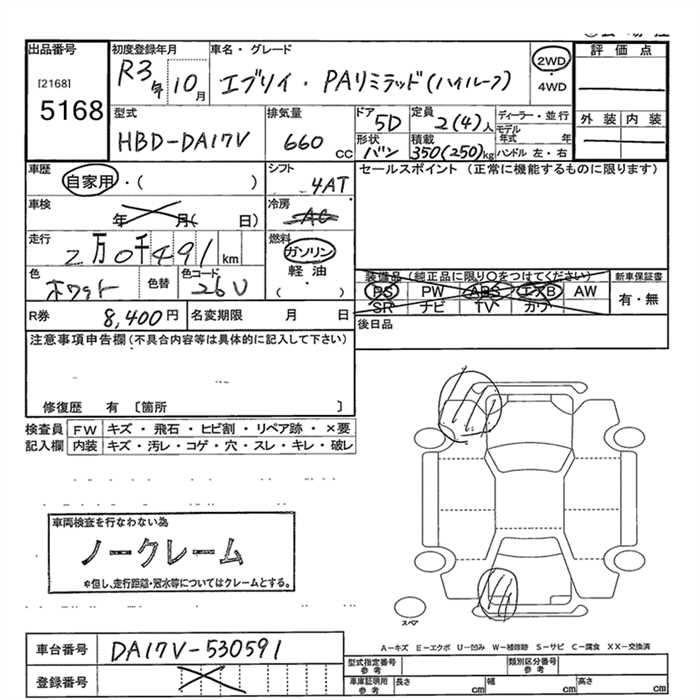 SUZUKI EVERY VAN PA LTD( HIGH ROOF ) - лот 5168