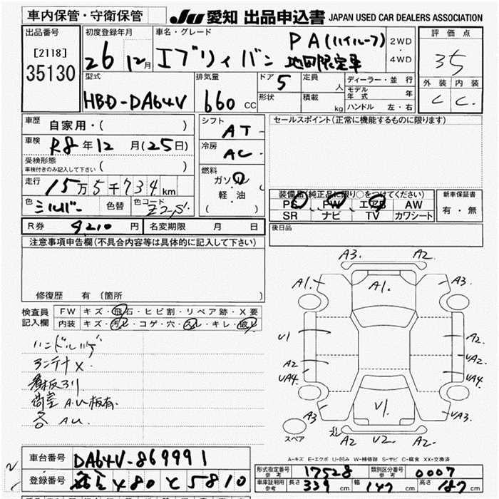 SUZUKI EVERY VAN PA AREA LIMITATION CAR - лот 35130