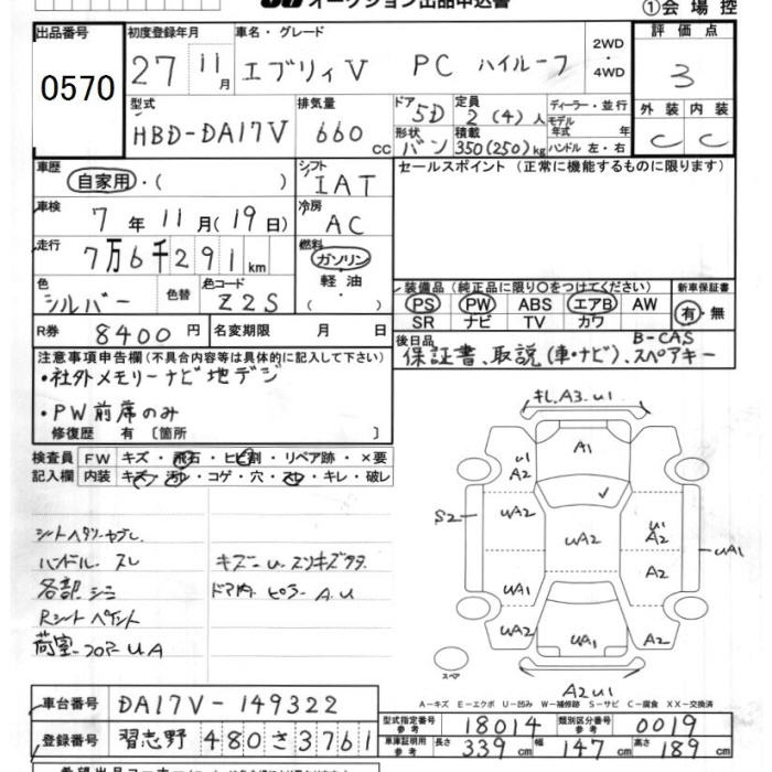 SUZUKI EVERY VAN PC HIGH ROOF - лот 570