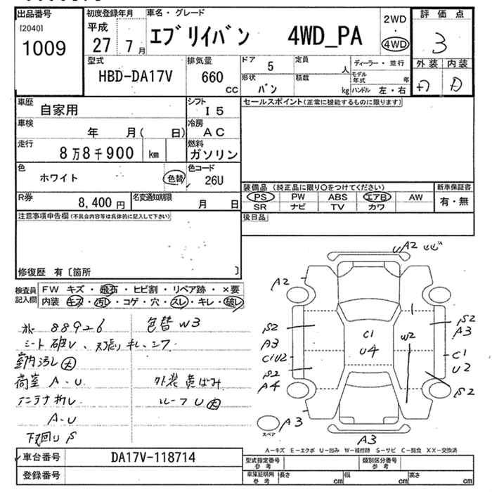 SUZUKI EVERY VAN 4WD PA - лот 1009