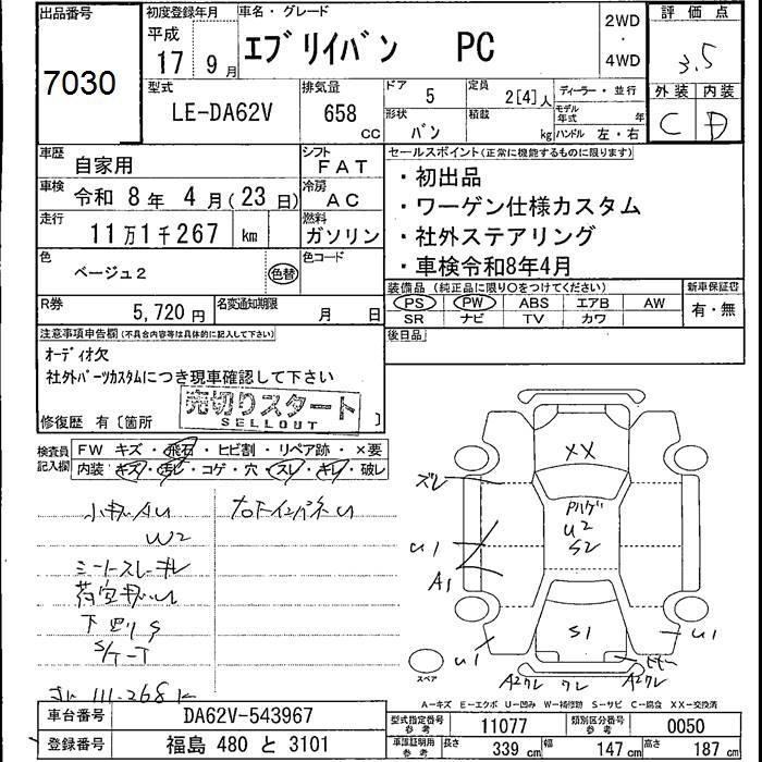 SUZUKI EVERY VAN PC - лот 7030