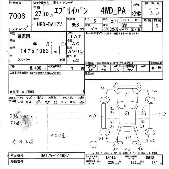 SUZUKI EVERY VAN 4WD PA - лот 7008