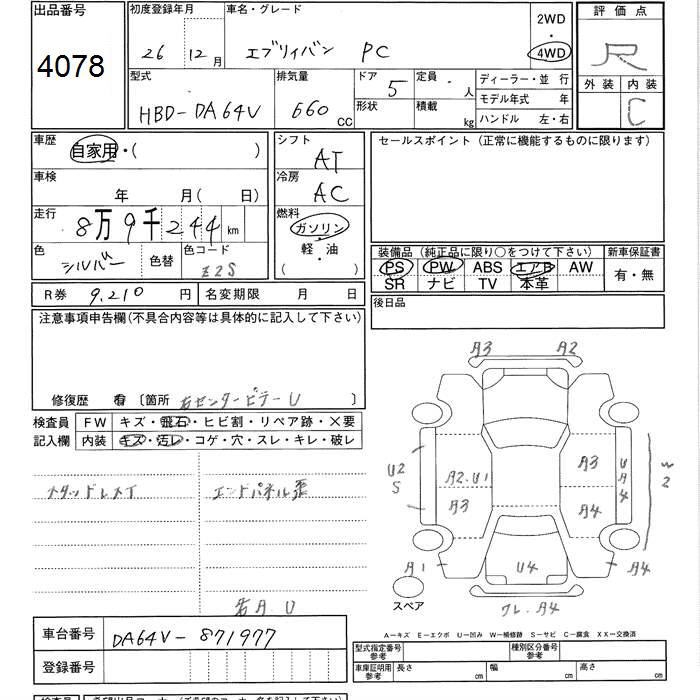SUZUKI EVERY VAN 4WD PC - лот 4078