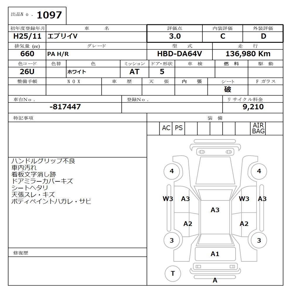 SUZUKI EVERY VAN PA H/R - лот 1097