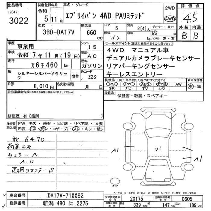 SUZUKI EVERY VAN 4WD PA LTD - лот 3022