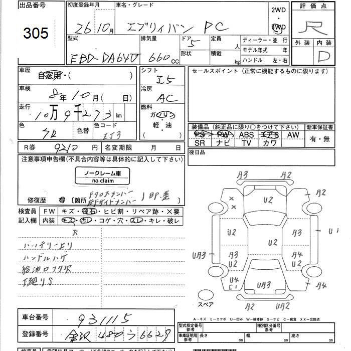 SUZUKI EVERY VAN 4WD PC - лот 305