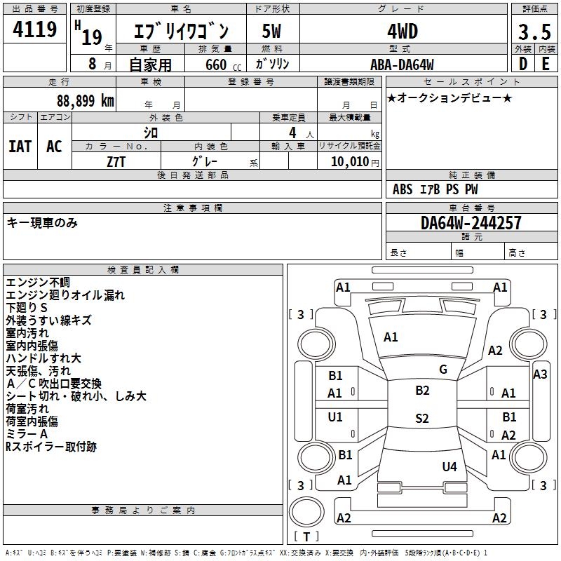 SUZUKI EVERY WAGON - лот 4119