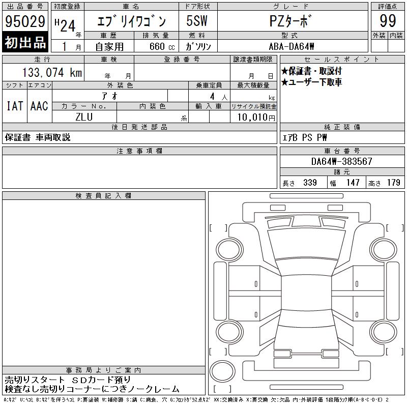 SUZUKI EVERY WAGON - лот 95029