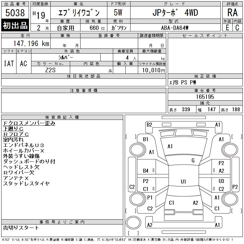 SUZUKI EVERY WAGON - лот 5038