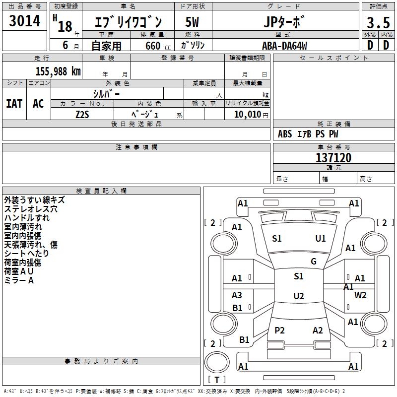 SUZUKI EVERY WAGON - лот 3014