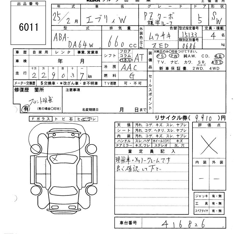 SUZUKI EVERY WAGON - лот 6011