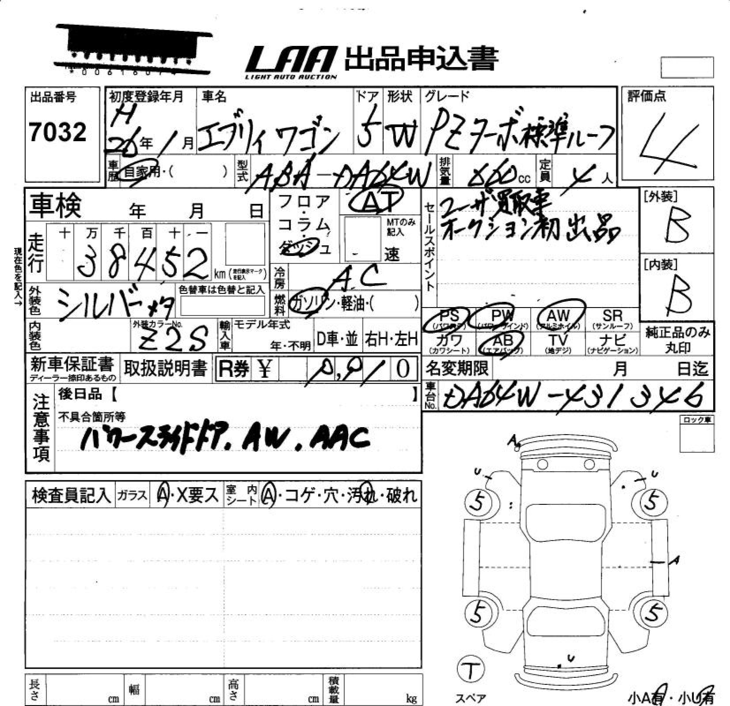 SUZUKI EVERY WAGON - лот 7032