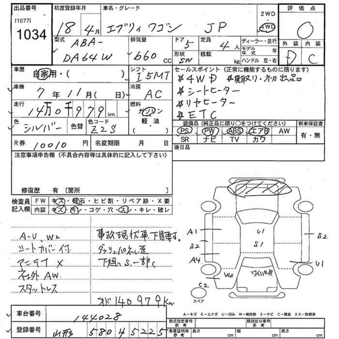 SUZUKI EVERY WAGON 4WD JP - лот 1034