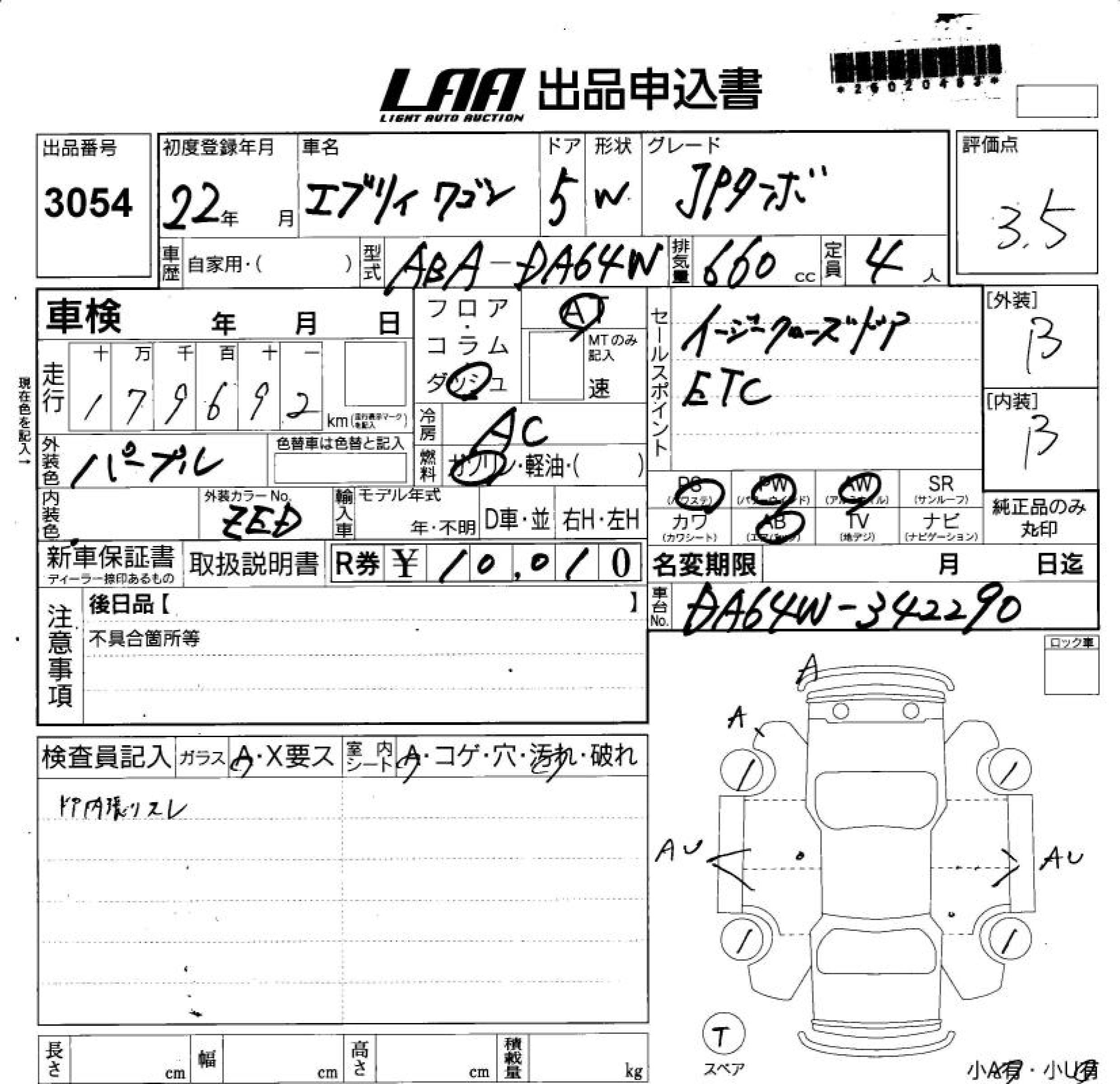 SUZUKI EVERY WAGON JP TURBO - лот 3054