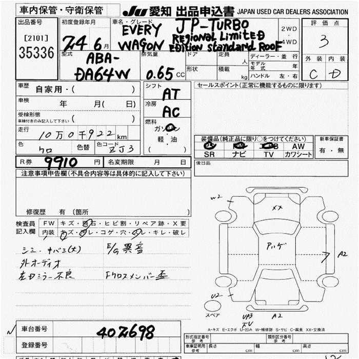 SUZUKI EVERY WAGON JP TURBO AREA LIMITATION CAR - лот 35336
