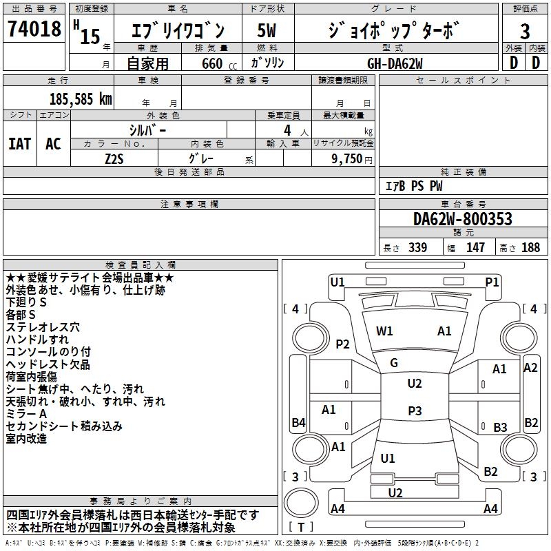 SUZUKI EVERY WAGON - лот 74018