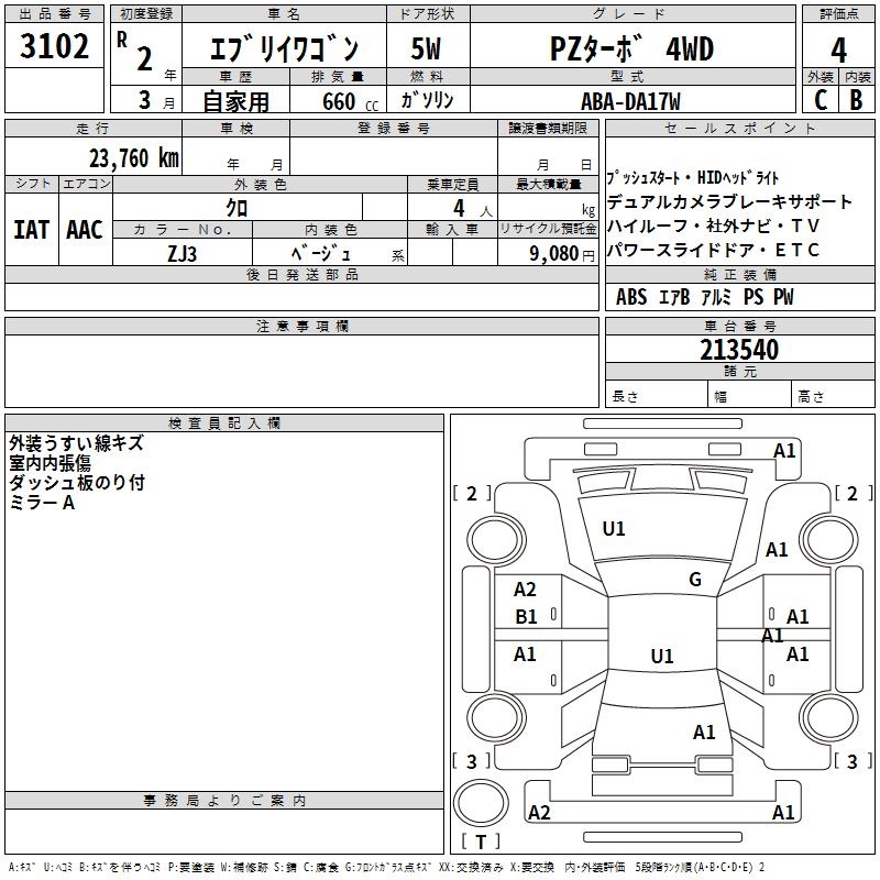SUZUKI EVERY WAGON PZ TURBO 4WD - лот 3102