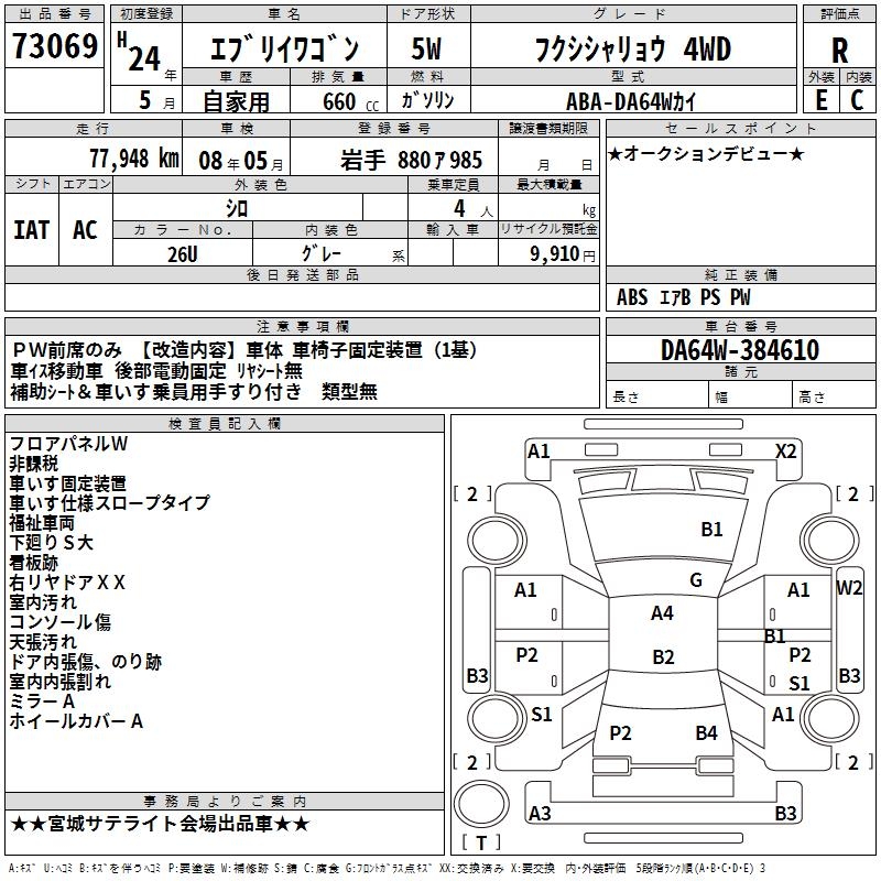 SUZUKI EVERY WAGON WELLFARE CAR 4WD - лот 73069
