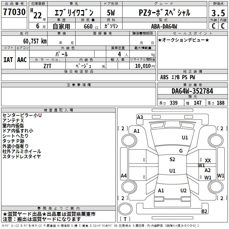 SUZUKI EVERY WAGON PZ TURBO SPECIAL - лот 77030