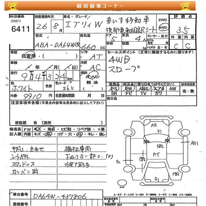 SUZUKI EVERY WAGON 4WD WELL CAB KOUBTENDOUKOTEIRSI - лот 6411