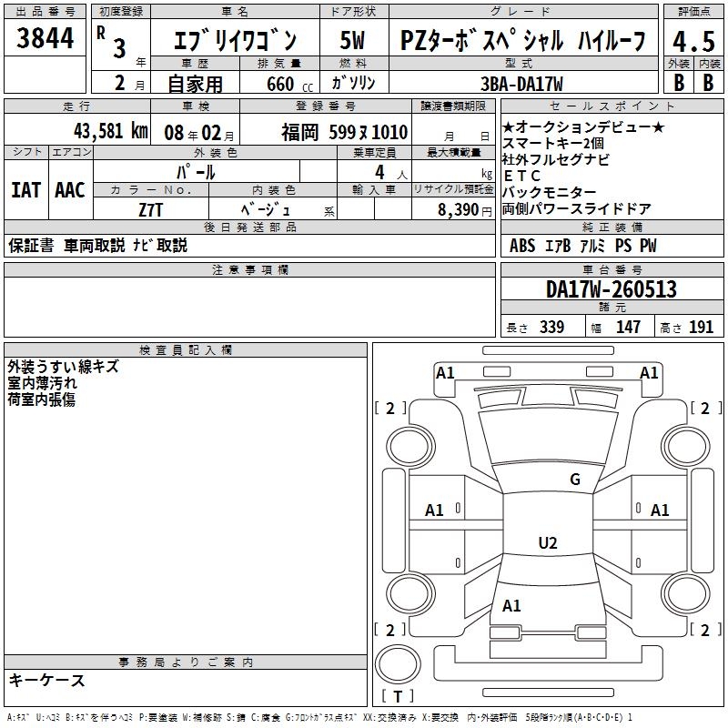 SUZUKI EVERY WAGON PZ TURBO SPECIAL HIGH ROOF - лот 3844
