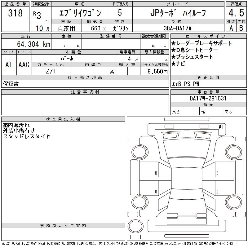 SUZUKI EVERY WAGON JP TURBO HIGH ROOF - лот 318