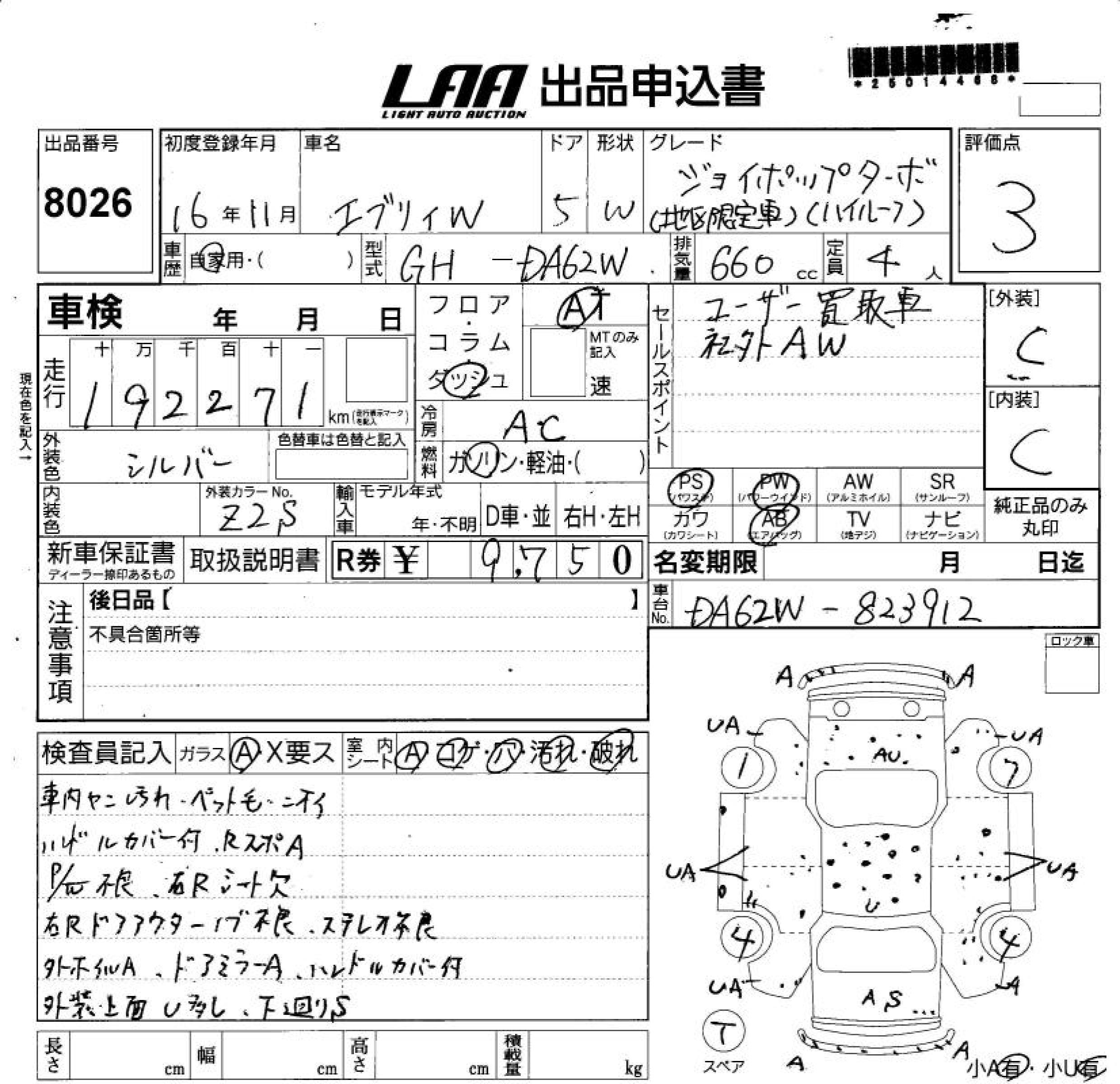 SUZUKI EVERY WAGON JOY POP TURBO AREA LIMITATION CAR - лот 8026