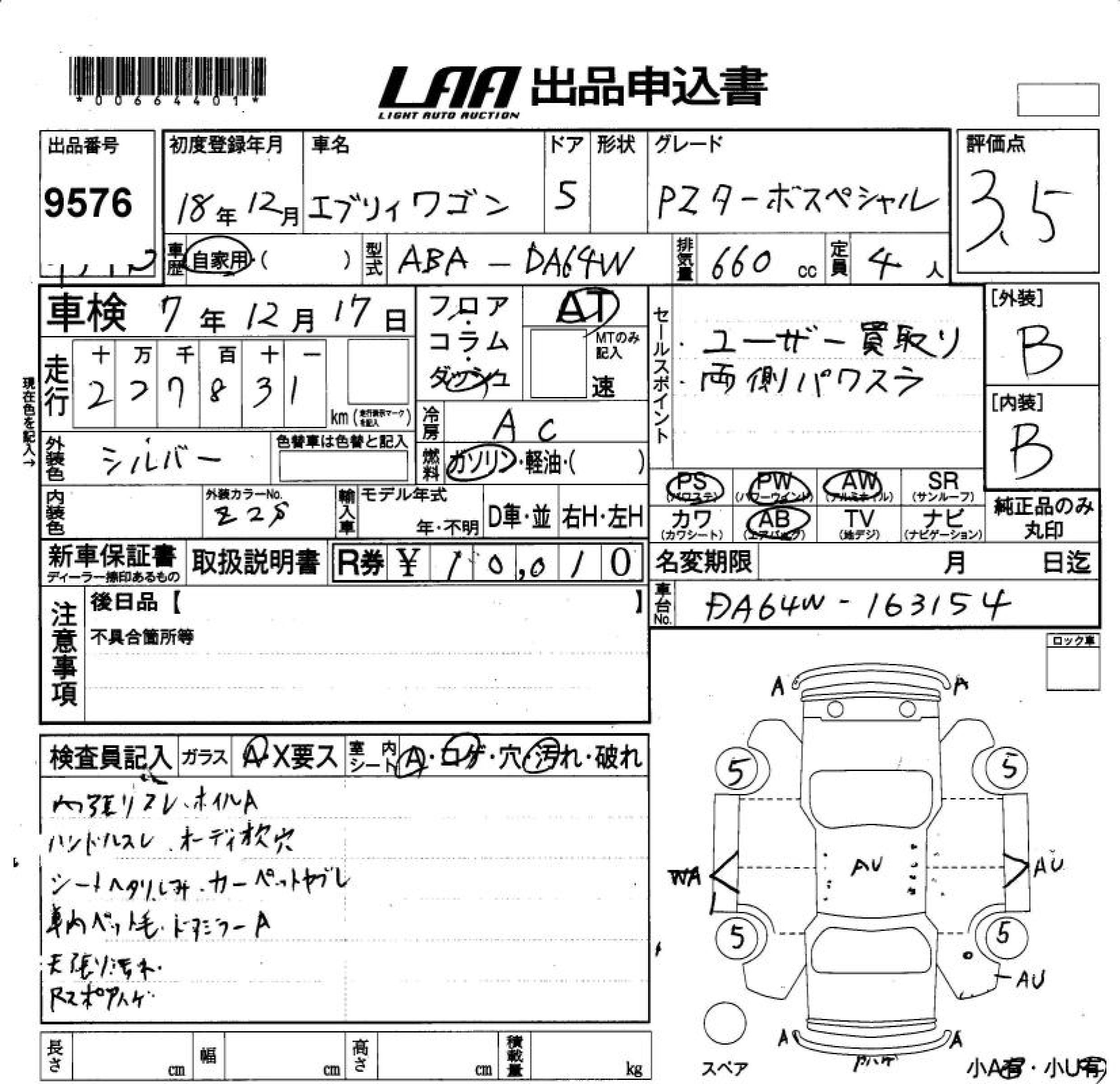 SUZUKI EVERY WAGON PZ TURBO SPECIAL - лот 9576