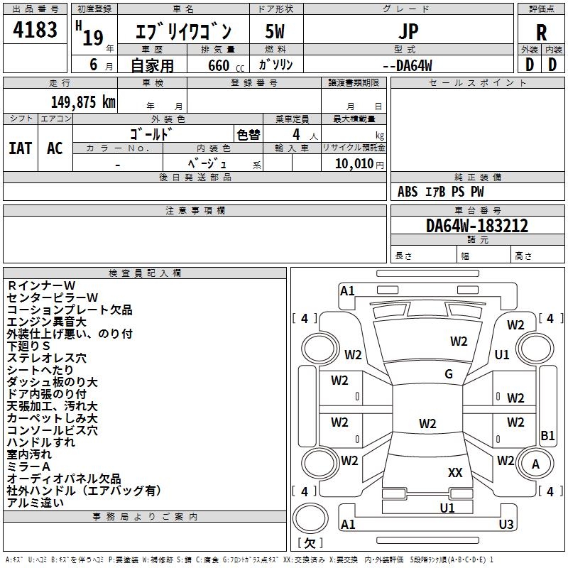 SUZUKI EVERY WAGON JP - лот 4183