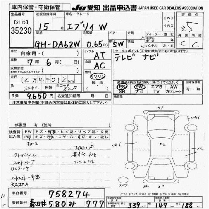 SUZUKI EVERY WAGON - лот 35230