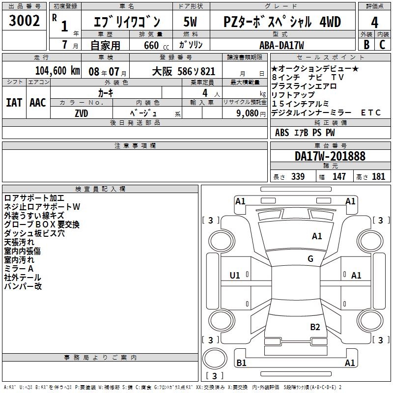 SUZUKI EVERY WAGON PZ TURBO SPECIAL 4WD - лот 3002