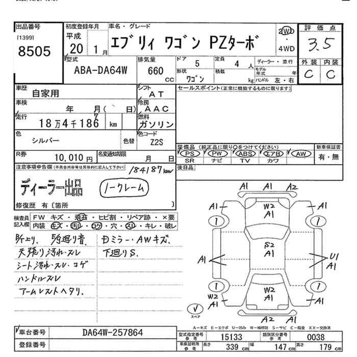 SUZUKI EVERY WAGON PZ TURBO 2WD - лот 8505