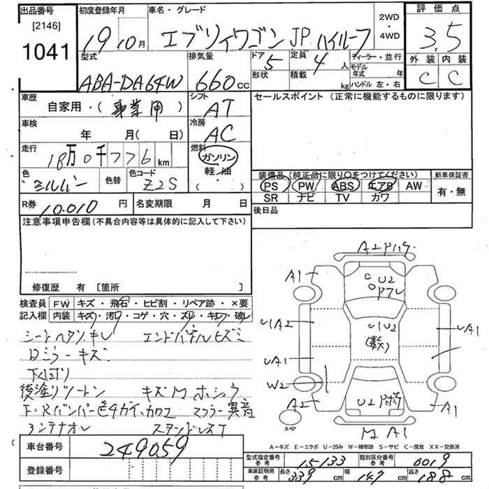 SUZUKI EVERY WAGON JP HIGH ROOF - лот 1041